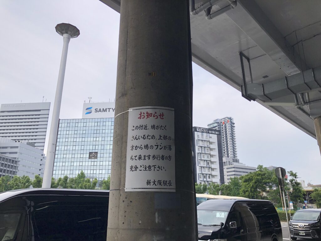 新大阪駅長からの鳩難いお知らせです。