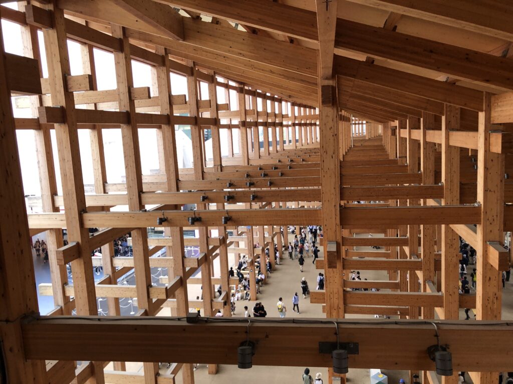 時間の都合もあって、もう、どのパビリオンを見ようという話題も出なくなり、せっかくなので大屋根リングを歩くことにしました。